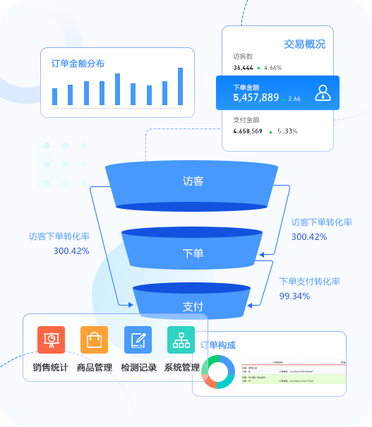 多樣化的銷售方式,生成后臺交易環(huán)節(jié)的關鍵數(shù)據,助你快讀指定最佳售賣策略,提高客單價喝應收,拓展更多變現(xiàn)可能性。